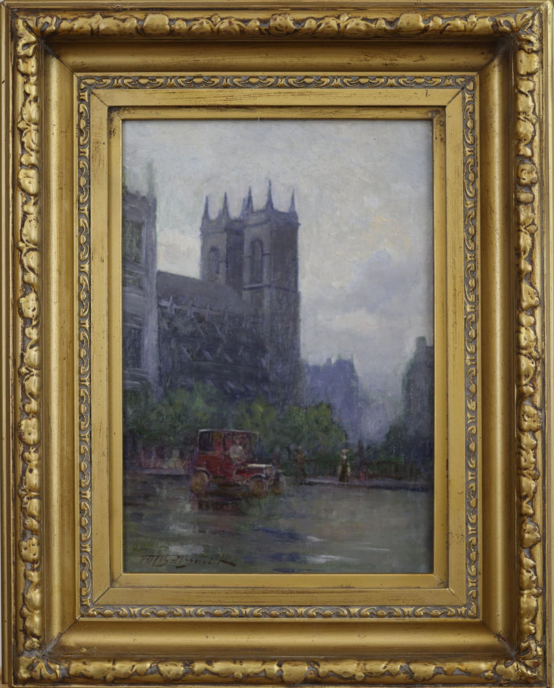 "Westminster Abbey, 1913" by Frederic Marlett Bell-Smith captures the iconic architecture and historical significance of one of London's most renowned landmarks. Bell-Smith, known for his skillful portrayal of architectural subjects, brings to life the majestic grandeur of Westminster Abbey through his expert use of oil on board.