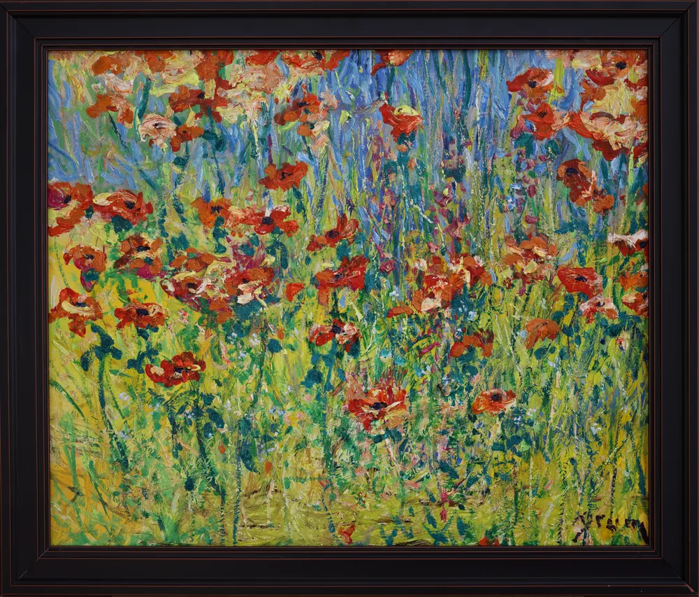 This piece conveys the beauty and vitality of spring, capturing the essence of wild poppies in their natural setting. The title Spring, Wild Poppies is fitting, as it encapsulates the subject matter and the season depicted. Despite the given date of 2024, this painting resonates with the style of post-impressionist or early modernist art.