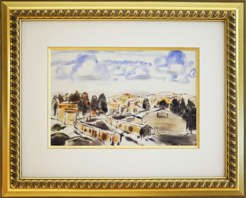 Rendered with Milne’s hallmark economy of line and confident, spontaneous brushwork, the painting conveys both architectural solidity and atmospheric lightness. By this stage in his career, his technique had evolved toward a kind of visual shorthand—each wash and contour planned with precision, then applied swiftly, in what David Silcox described as “the manner of the Zen masters.” The result is a composition at once calm and alive, resonant with Milne’s lifelong search for balance between structure and spirit.