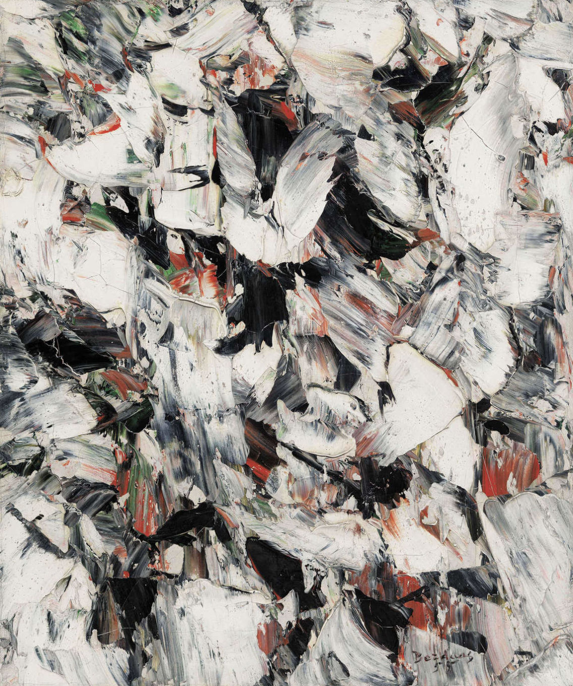 Between 1953 and 1955, Borduas spent extended periods in New York, where he encountered the work of American Abstract Expressionists such as Willem de Kooning, Jackson Pollock, and Mark Rothko. While he absorbed ideas about gesture, scale, and freedom of form from that scene, he remained true to a distinct voice based on his own experiences and earlier experiments with automatism and expressive mark‑making.