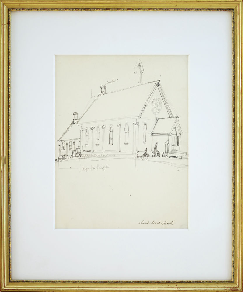 This pencil drawing by Franklin Carmichael, titled Church, Newtonbrook, is a crisp architectural study of the Newtonbrook Methodist Church in what is now North York, Toronto. Carmichael renders the building...This pencil drawing by Franklin Carmichael, titled Church, Newtonbrook, is a crisp architectural study of the Newtonbrook Methodist Church in what is now North York, Toronto. Carmichael renders the building with his characteristic precision and sensitivity to proportion, using clean, confident graphite lines to map the structure’s essential form.